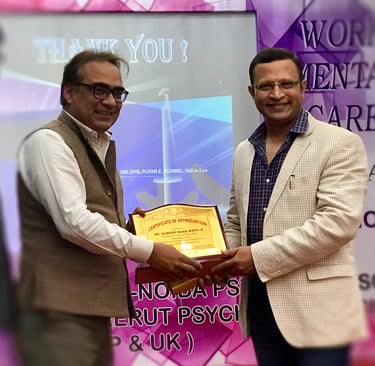 Fifth BW Business World Digital India Summit Award" in the category of "Best Public Service Initiatives" awarded for "Karnataka Telepsychiatric Mentoring and Monitoring Project" (I was Co-Principal Investigator for this project) on 28th June 2019 at Shangri-La Eros Hotel, New Delhi